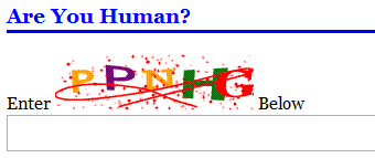 The following creates the CAPTCHA image on the page, that looks like the image below the code: