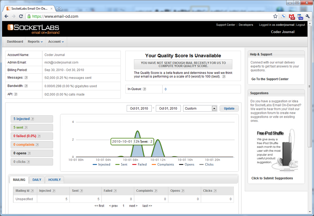 - And give me the wonderful benefit of analytics for my emails sent each day, analytics is like candy to developers, at least for me. Nothing better than a graph in my opinion