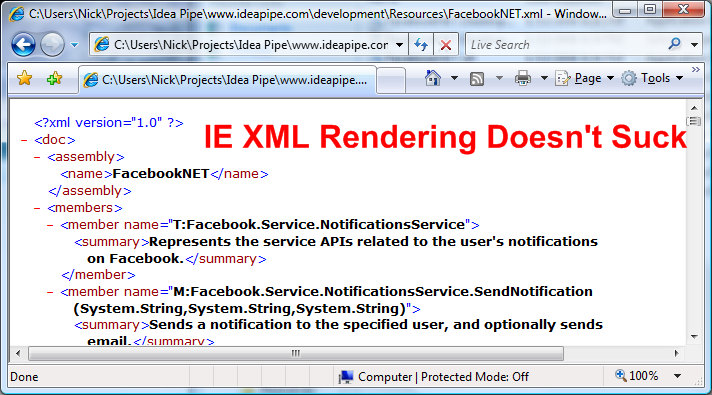 Hey news flash Steve Jobs this is how a real browser renders XML, and does a damn fine job at it.